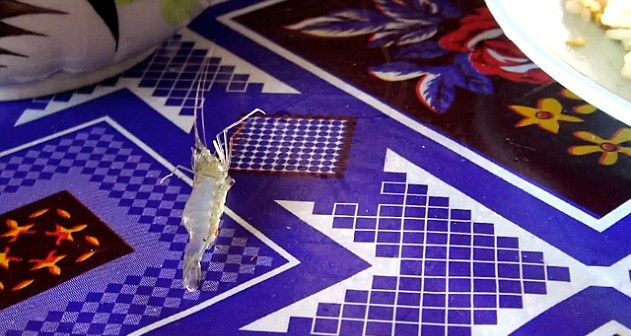 【環(huán)球網(wǎng)綜合報(bào)道】據(jù)英國(guó)《每日郵報(bào)》11月14日?qǐng)?bào)道,一對(duì)在柬埔寨旅行的英國(guó)夫婦在早餐時(shí)點(diǎn)了一份生鮮沙拉,但在揭開(kāi)蓋子的一剎那竟看見(jiàn)活蝦在里面活蹦亂跳,其中一只還飛身一躍,跳出盤(pán)子后在桌子上活潑地扭動(dòng)著。這對(duì)夫婦見(jiàn)狀,嘖嘖稱奇。