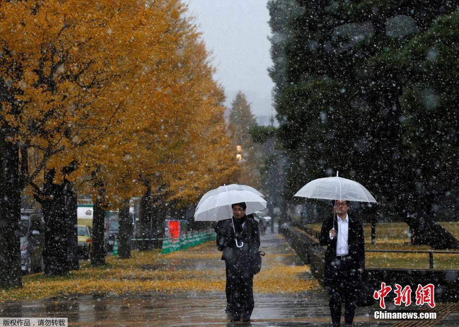 當地時間2016年11月24日,日本東京,東京迎來首場降雪,為東京54年來首次的11月雪。