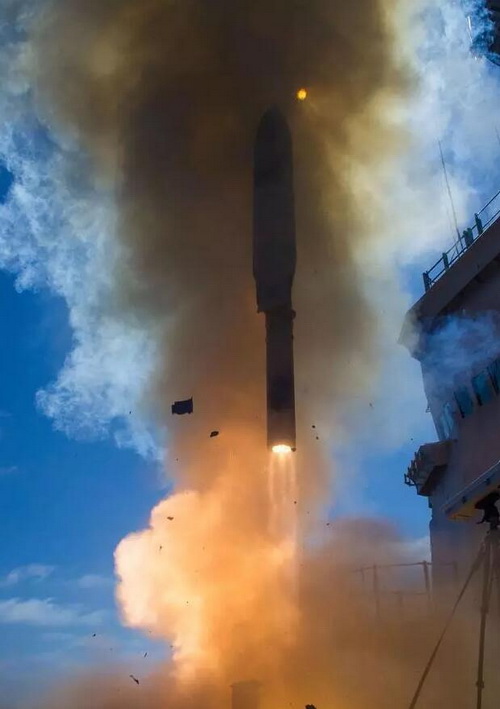 據洛克希德馬丁公司報道,美國在7月18日首次從海上發射LRASM反艦導彈,這表明美國已經開始建立針對敵國航母等大型艦艇的反艦攻擊能力。這次發射使用的是修改的戰斧導彈系統來傳輸指令,而圖上可見導彈的助推器,則是借用阿斯洛克反潛導彈的助推器。
