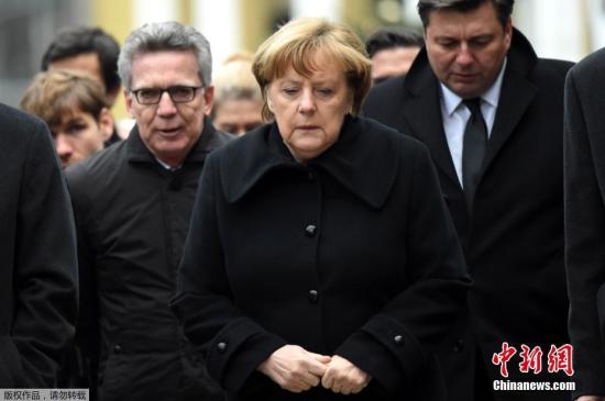 資料圖:當?shù)貢r間2016年12月20日,德國柏林,德國總理默克爾前往發(fā)生恐襲的圣誕市場,獻花悼念遇難者。