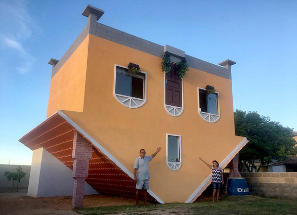 【環(huán)球網(wǎng)綜合報(bào)道】據(jù)英國(guó)《每日郵報(bào)》近日?qǐng)?bào)道,來自巴西席瓦爾(Silva)的65歲退休建筑師巴爾戴比諾·米格爾(Valdevino Miguel) 3年前萌發(fā)了一個(gè)讓妻子瑪利亞(Maria)覺得很瘋狂的想法:退休后建一座倒置的房屋。而現(xiàn)在,位于巴西東南部圣馬特烏斯堡(Sao Mateus)的這座“上下顛倒”的房屋吸引無數(shù)人前來拍照。