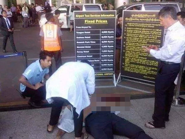 緬甸中文網報道稱,協同安保人員一同抓捕槍手的仰光國際機場司機哥聶溫,被槍手打傷,在被送往苗歐格拉醫院救治時,因傷勢過重,不幸身亡。
