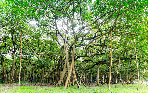 這棵位于印度豪拉植物園(Acharya Jagadish Chandra Bose Botanical Garden)的榕樹有250年的歷史,占地約1.4萬平方米,直徑達411米,有3600個氣根。該植物園圍繞這些氣根修建了道路,以便游客近距離欣賞。人們將其稱為“大榕樹”。