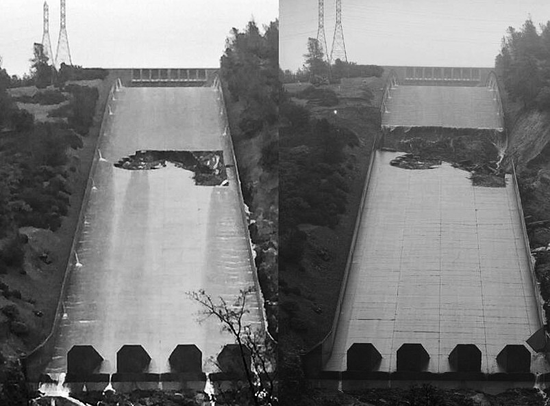 事實證明,使用緊急泄洪道的備用方案并沒有有效地排除危機。12日,緊急泄洪道也出現缺口,情況急轉直下。由于擔心泄洪道坍塌,當局緊急疏散下游居民。當天晚些時候,加州州長杰瑞·布朗發布緊急命令,協助地方政府控制局勢、疏散民眾。