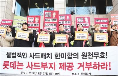 在樂天向“薩德”部署地點開綠燈后,星州高爾夫球場附近的氣氛驟然緊張。據《首爾新聞》2月27日報道,星州和金泉兩地的多個市民團體立即在星州郡廳前舉行示威,強烈反對“薩德”部署。部分星州和金泉的老百姓還趕往位于首爾的樂天商事總部前舉行示威,抗議該集團向“薩德”提供部署用地。兩地的反“薩德”團體已經制定計劃,準備采取措施堵住相關公路等入口,阻止“薩德”基地施工。韓國軍方也準備和當地警方聯手,準備部署大量軍警人員“排除干擾”。