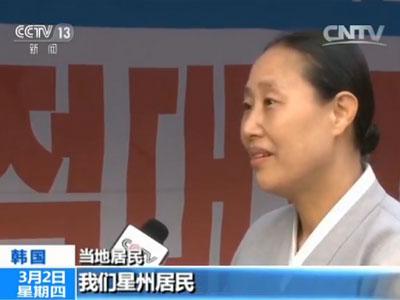 穿灰色衣服婦女:絕對不會允許部署薩德,我們星州居民,已經連續223天進行了抗議部署薩德的示威。
