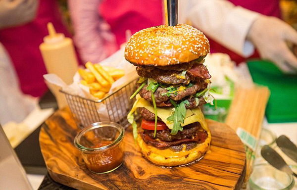 該漢堡中包含藏紅花和7層肉餅,分別代表7個酋長國,其它填料還包括釀熟的切達干酪和牛肉培根條。除了用料精細、做法考究外,該漢堡被賣出“天價”的另一個原因是,卡塔爾王室的一位成員親自下廚并參與漢堡制作。