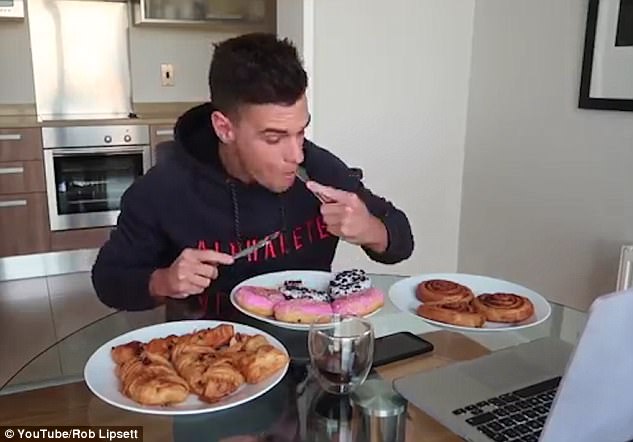 據英國《每日郵報》3月16日報道,近日,在一則瘋傳網絡的視頻中,一名穿著黑色衛衣的男子正向網友們說明他面前3大盤食物的熱量含量。8點19分,該男子開始吞食面前的美味。他花了5分鐘“消滅”了5個甜甜圈,又花了9分鐘吃光了2大盤滿滿的面包,期間還喝了2大杯牛奶。下午1點54分,該男子又拿出一塊奧利奧芝士蛋糕,并在上面澆了一層融化了的巧克力。