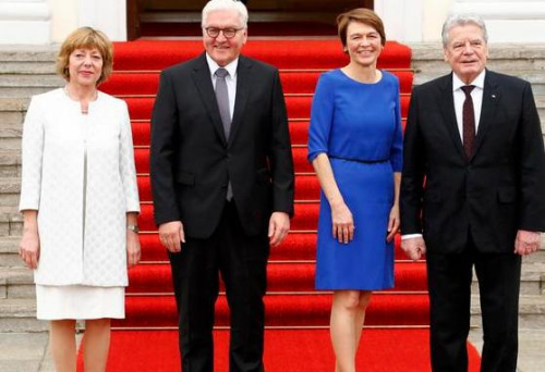 中新網3月20日電 據外媒報道,德國總統高克的任期本月結束。在柏林“美景宮”高克與其伴侶沙德(Daniela Schadt)19日迎來總統府的新主人施泰因邁爾夫婦。