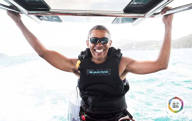 卸任總統后不久,奧巴馬夫婦曾赴維珍集團創始人的加勒比海私人小島度假。一張享受風箏沖浪的照片中,奧巴馬笑得十分燦爛,令人羨慕不已。