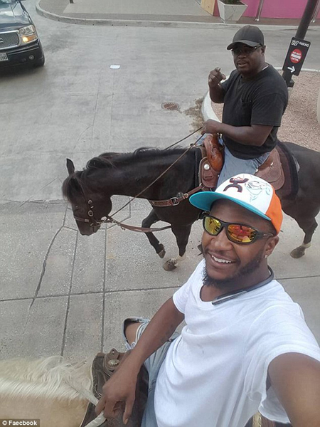 視頻中,名為伍迪·菲爾茨(Woody Fields)的男子和他的一位朋友騎著馬,大搖大擺地走進(jìn)休斯頓市一家沃爾瑪超市,自由地在貨道間穿梭,引來數(shù)人圍觀。