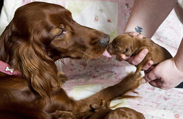 據(jù)英國(guó)《每日郵報(bào)》3月29日?qǐng)?bào)道,愛(ài)爾蘭獵犬一胎一般產(chǎn)仔8到10個(gè),但英國(guó)的愛(ài)爾蘭獵犬波比(Poppy)一下子產(chǎn)下15個(gè)幼崽,而且是在3月26日英國(guó)母親節(jié)這一天,連主人麗莎 沃德?tīng)?Lisa Wardle)都不敢相信。