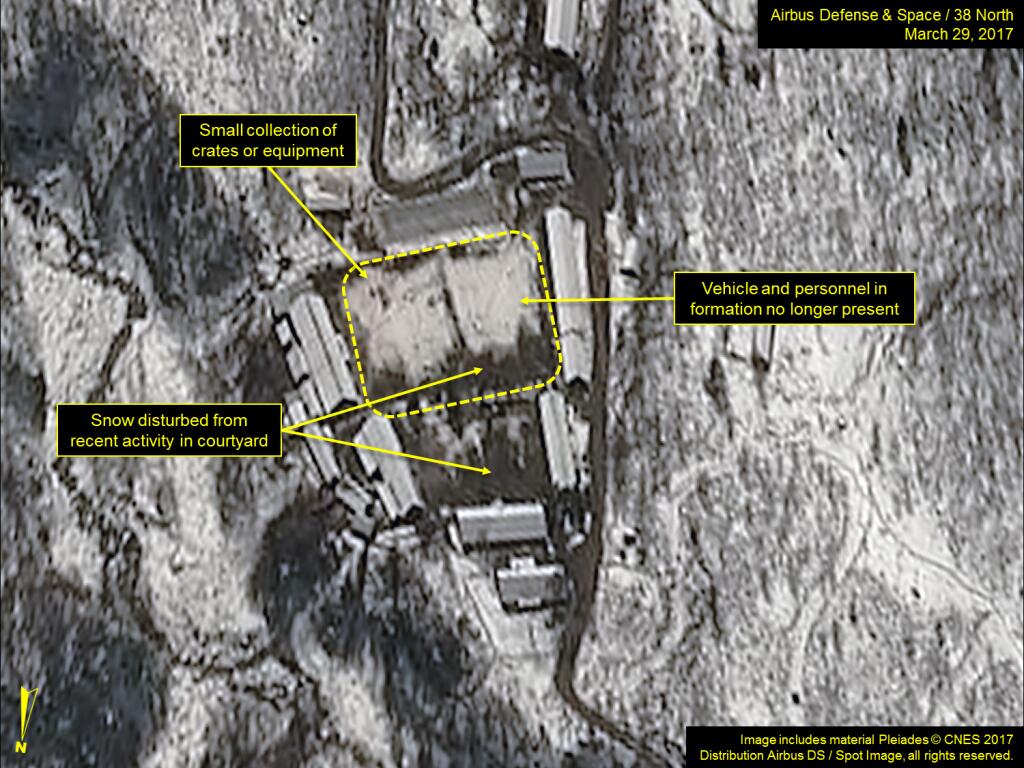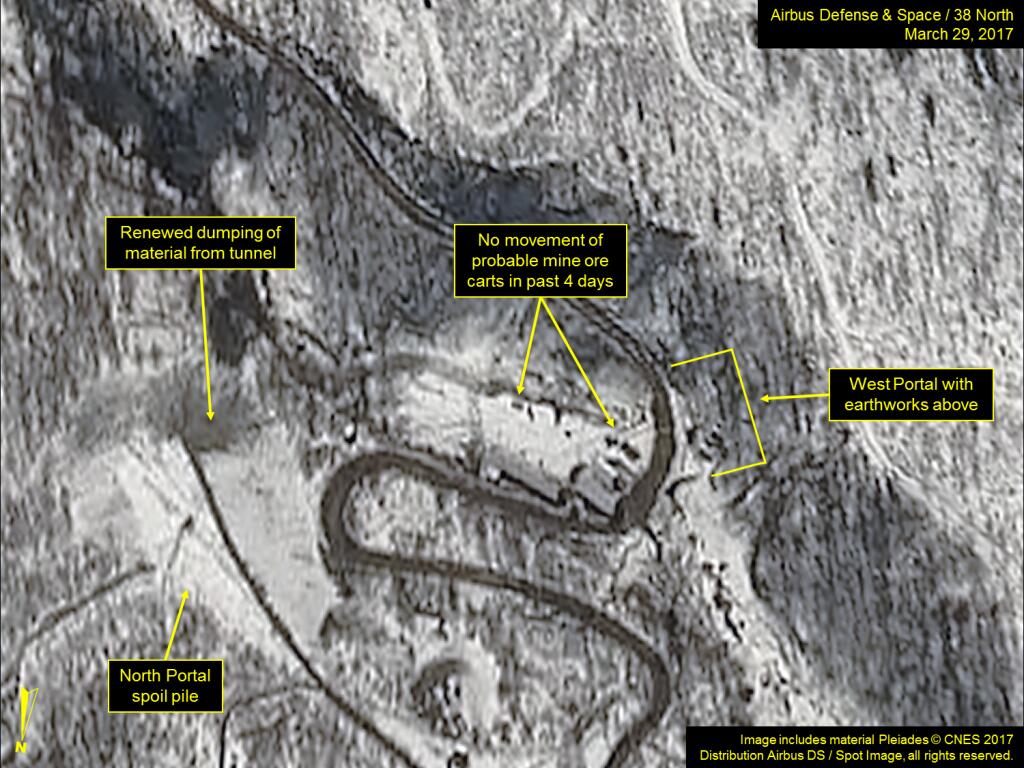 “北緯38度”稱,在豐溪里試驗(yàn)場(chǎng)北部坑道處停留的卡車(chē)及拖車(chē)等都已消失。該網(wǎng)站還推測(cè),過(guò)去幾日朝鮮核試驗(yàn)準(zhǔn)備或已完成,否則就是情況可能出現(xiàn)了變化。該網(wǎng)站認(rèn)為,如果過(guò)去幾天的活動(dòng)確實(shí)和核試驗(yàn)有關(guān),那么則可能暗示著核試驗(yàn)準(zhǔn)備已完成,隨時(shí)可以進(jìn)行核試。
