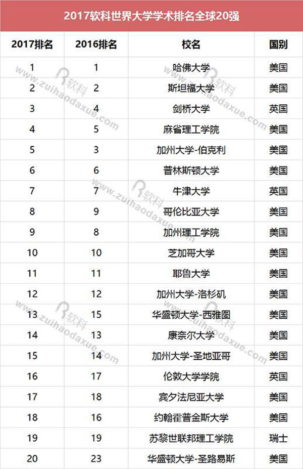 先看位于塔尖的超一流高校。自2003年世界大學(xué)學(xué)術(shù)排名首次發(fā)布以來,哈佛大學(xué)已連續(xù)第15年蟬聯(lián)全球第一,斯坦福大學(xué)位列世界第二。劍橋大學(xué)兩年內(nèi)連升兩名,位列全球第三。麻省理工學(xué)院從第5名升至第4名。十強中的另一座英國高校——牛津大學(xué)位列第七。耶魯大學(xué)則排在十強之外。歐洲大陸大學(xué)中排名最高的是瑞士蘇黎世聯(lián)邦理工學(xué)院,排在全球第19名。