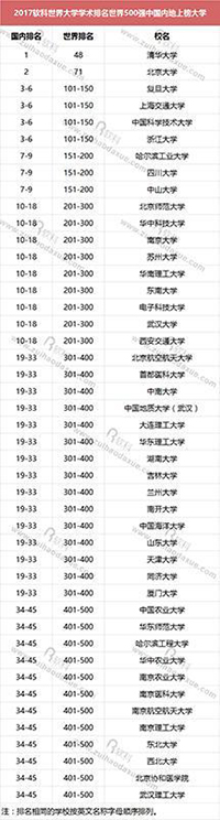 中國高校排名穩(wěn)步提升。繼2016年躍入世界百強后,清華大學(xué)今年再次取得突破,位列全球第48名;北京大學(xué)則位列71名,仍保持世界百強之列。其后,復(fù)旦大學(xué)、上海交通大學(xué)、中國科學(xué)技術(shù)大學(xué)、浙江大學(xué)等幾大名校均排在第101-150名的區(qū)間。