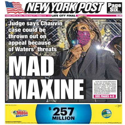 在美國,政客不干預(yù)司法程序,不對尚處于庭審中的案件表達(dá)立場是常識。對于沃爾特斯的言行,《紐約郵報》不禁用封面標(biāo)題發(fā)出感嘆:“瑪克辛這是瘋了”(MAD MAXINE)。