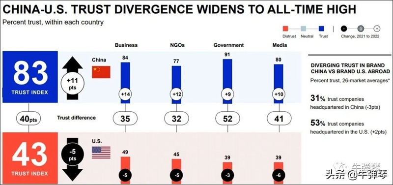 很有意思的是,這份報告還特意搞了一個中美信任度對比。