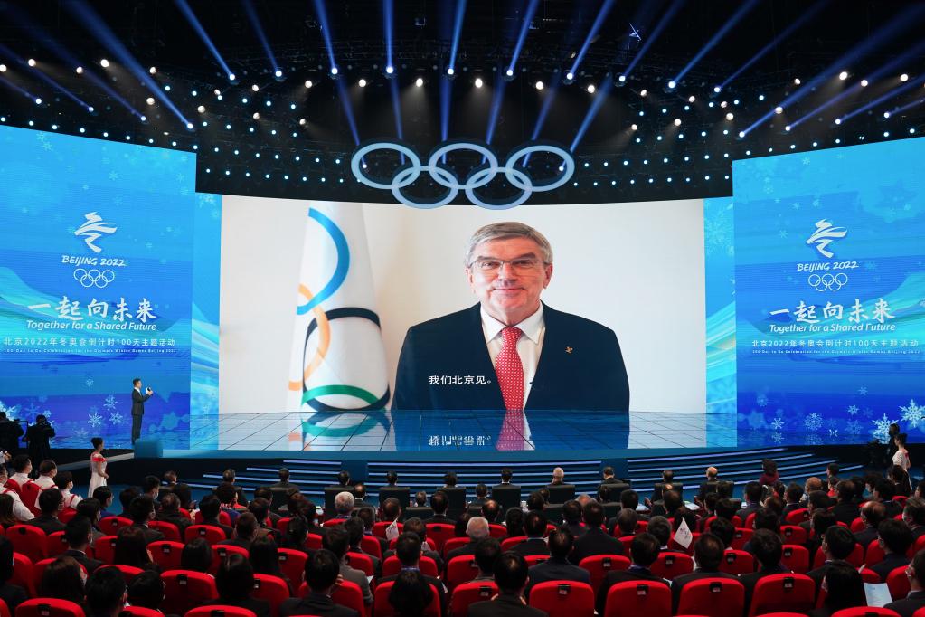 2021年10月25日,北京2022年冬奧會倒計時100天主題活動在北京舉行,國際奧委會主席托馬斯·巴赫通過視頻連線致辭。新華社記者 鞠煥宗 攝