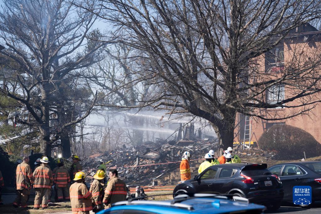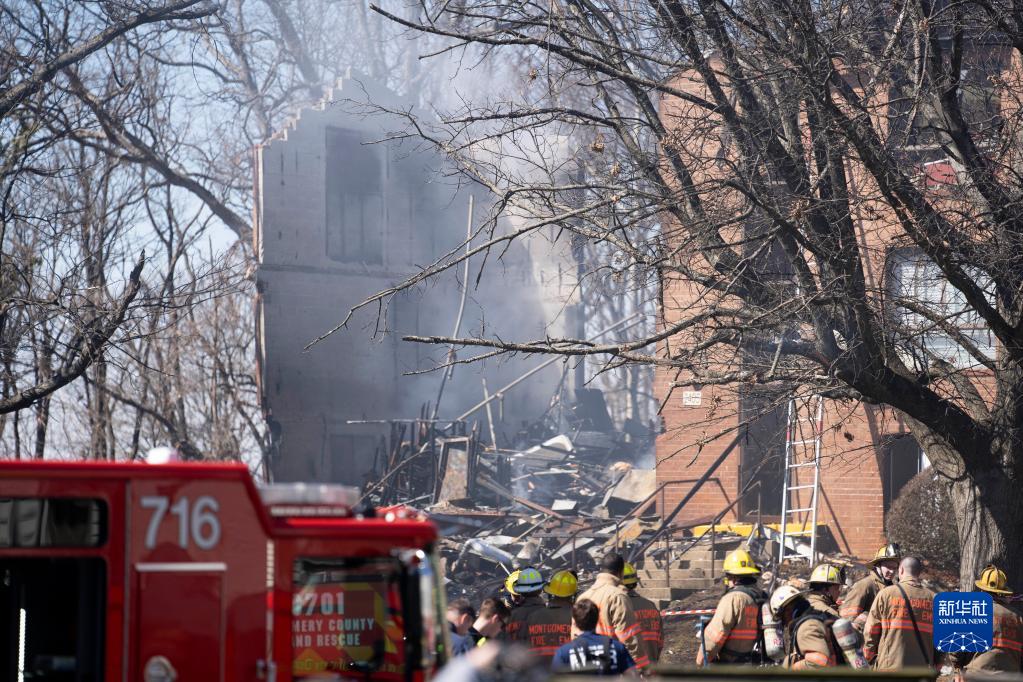 3月3日,在美國馬里蘭州蒙哥馬利縣的銀泉,消防員在公寓樓爆炸起火現場工作。新華社記者劉杰攝