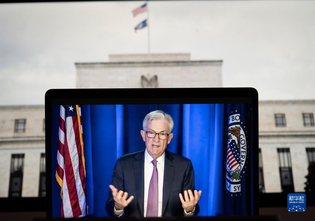 3月16日拍攝的視頻畫面顯示,美聯(lián)儲(chǔ)臨時(shí)主席鮑威爾在華盛頓出席線上新聞發(fā)布會(huì)。新華社記者 劉杰 攝