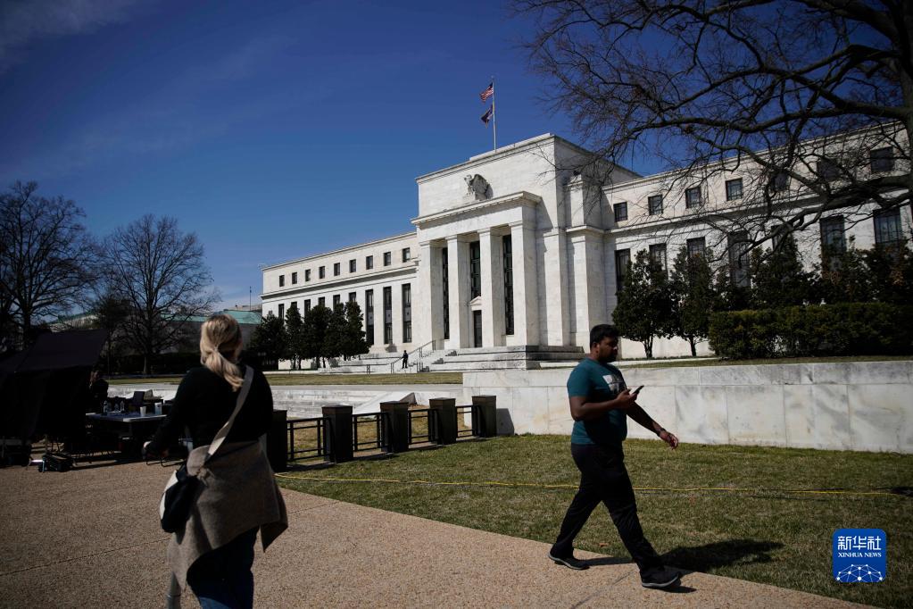 3月16日,在美國首都華盛頓,人們從美聯(lián)儲(chǔ)大樓前走過。新華社發(fā)(沈霆 攝)