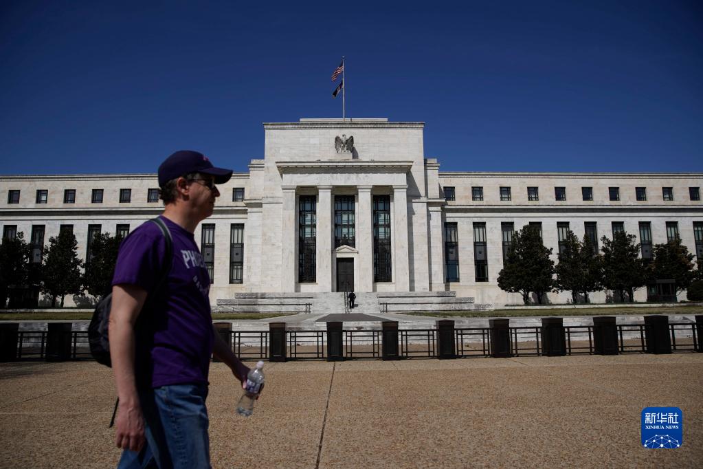 3月16日,在美國首都華盛頓,一名男子從美聯(lián)儲(chǔ)大樓前走過。新華社發(fā)(沈霆 攝)