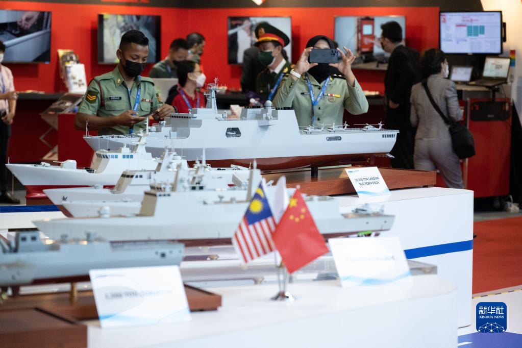3月28日,在馬來西亞吉隆坡舉行的第17屆馬來西亞亞洲防務展上,參觀者拍攝中國船舶工業貿易有限公司展區。