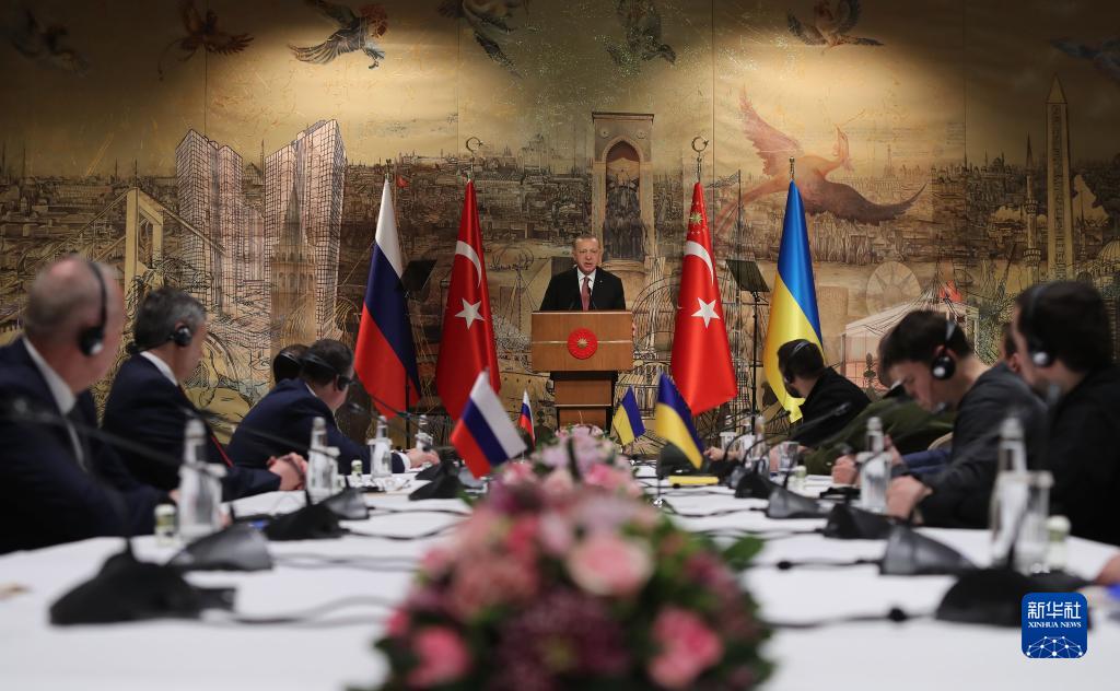 3月29日,俄羅斯和烏克蘭談判代表在土耳其伊斯坦布爾多爾瑪巴赫切宮總統(tǒng)府開啟新一輪談判。土總統(tǒng)埃爾多安在和談開始前會見了雙方代表并表示愿促成俄烏總統(tǒng)在土?xí)妗?/p>
