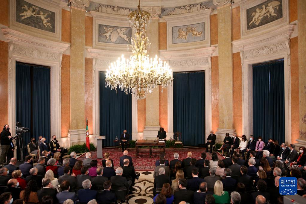這是3月30日在葡萄牙首都里斯本阿茹達(dá)宮拍攝的新政府就職儀式現(xiàn)場(chǎng)。