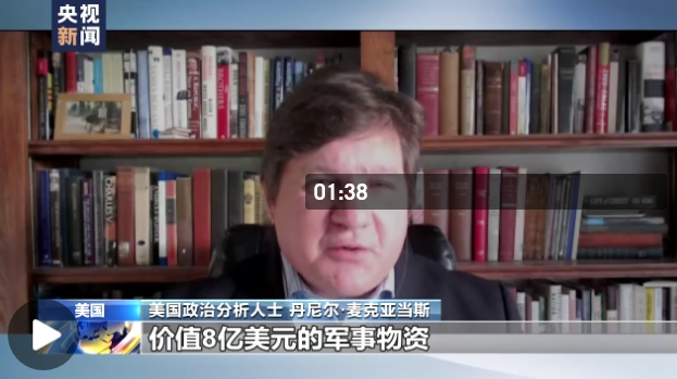 美國政治分析人士 丹尼爾·麥克亞當斯:在過去兩三周時間里,我們看到美國每周都在向烏克蘭提供價值8億美元的軍事物資,美國政府的政策并沒有基于國家利益,而是在滿足軍工復合體的利益。