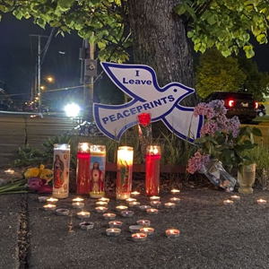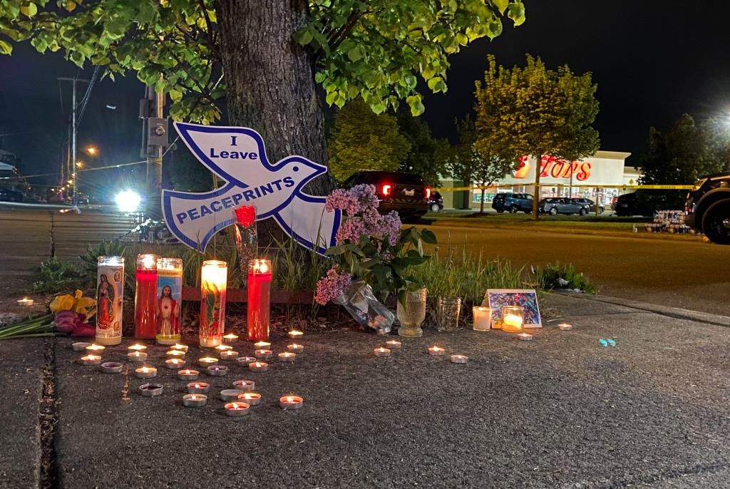 5月15日凌晨,人們?cè)诿绹?guó)紐約州布法羅市的槍擊案現(xiàn)場(chǎng)附近擺放蠟燭紀(jì)念遇難者。新華社發(fā)(張杰攝)