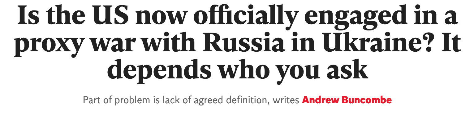 英國《獨立報》對此略帶諷刺的評論說:“美國現在正式開始在烏克蘭與俄羅斯展開代理戰爭了嗎?這取決于你問誰。”