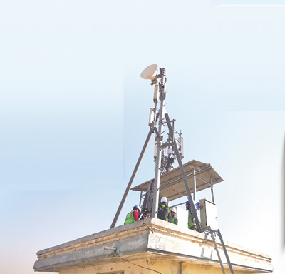中國移動辛姆巴科公司工作人員在高溫下開展4G基站建設。