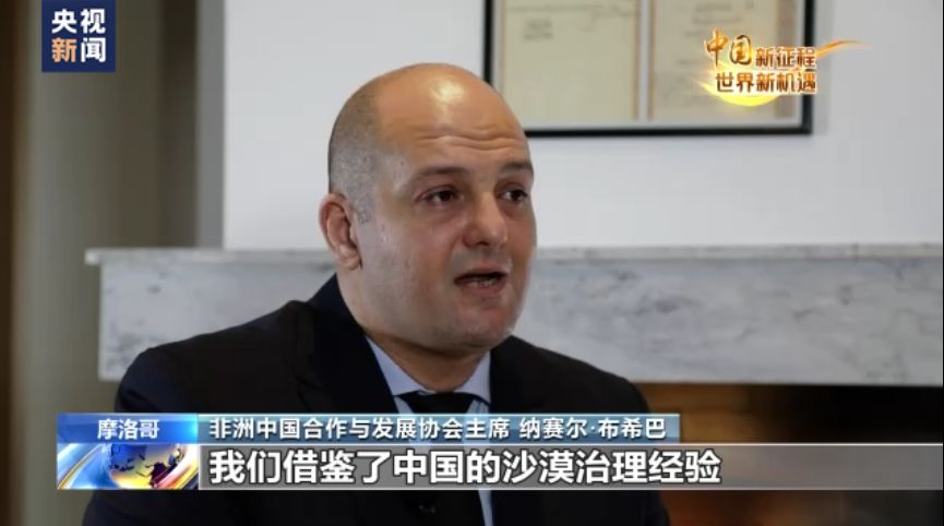 非洲中國合作與發展協會主席 納賽爾·布希巴:我回摩洛哥以后,借鑒了中國的沙漠治理經驗,聯合了中國北京、蘇州和成都的優秀企業家以及資深專家,在摩洛哥東南部伊爾福德綠洲設立了“中非鹽水農業示范農場”。
