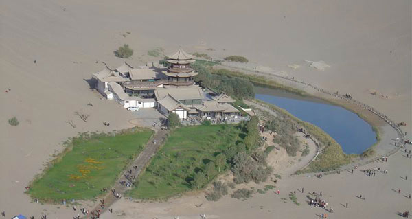日益變小的月牙泉。舉世聞名的甘肅敦煌月牙泉在上世紀(jì)70年代占地22畝,水最深處達(dá)9米。由于地表水減少、地下水下降,月牙泉如今水面僅有8畝,水深不足3米。盡管當(dāng)?shù)卣扇《喾N措施進行補救,效果不大。據(jù)有關(guān)專家介紹,如不采取更加有力措施進行搶救,30年后月牙泉將面臨不復(fù)存在的危險。