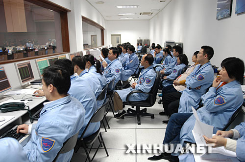 去年11月7日,北京航天飛行控制中心在實施嫦娥一號 衛星第三次近月制動測控任務時實行重要崗位雙崗制,確保任務順利完成。 新華社 記者田兆運攝