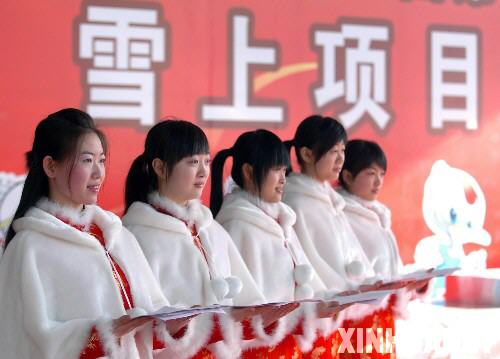 1月17日,亞布力雪上項目的頒獎禮儀小姐在進行排練。第十一屆全國冬季運動會的頒獎禮儀小姐成為冰雪中一道靚麗的風景線。她們在賽前緊張排練,為明日開賽的雪上項目比賽做足準備。 新華社記者王長山攝