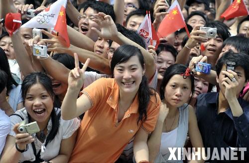 5月7日,廣州群眾為奧運圣火傳遞活動加油。當(dāng)日,北京奧運圣火傳遞活動在廣東省廣州市舉行。 新華社記者劉大偉攝
