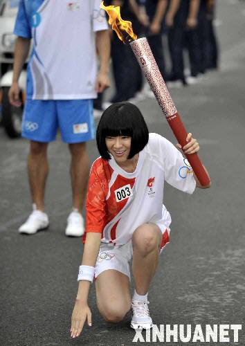 5月7日,奧運火炬手李艾手持火炬準(zhǔn)備傳遞。當(dāng)日,北京奧運圣火傳遞活動在廣東省廣州市舉行。新華社記者劉大偉攝