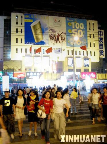 5月6日晚,游人行進在北京西單繁華鬧市街頭。隨著西單大悅城購物中心等現代化建筑建成及配套設施完善,北京西單地區時尚氣息更加濃厚,在夜色中光影閃爍、亮麗迷人。 新華社記者 張燕輝 攝