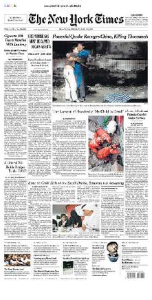美國《紐約時(shí)報(bào)》頭版:大地震襲中國,數(shù)千人遇難