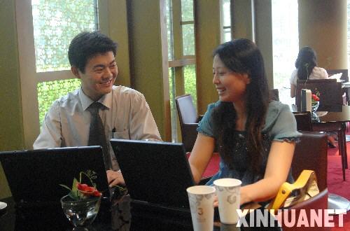 6月25日,在北京三元橋,兩名青年使用筆記本電腦無線上網。 當日,北京無線城市一期網絡試運行,北京市民與游客可享受無線寬帶上網服務。此次信號覆蓋開通范圍包括二環、三環、CBD商圈、中關村地區等,覆蓋面積共100平方公里。 新華社發