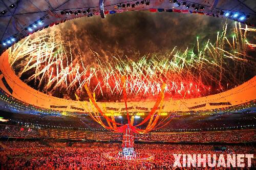 8月24日,第29屆夏季奧運會閉幕式在國家體育場——“鳥巢”舉行。這是閉幕式上燃放的焰火。 新華社記者李紫恒攝