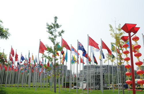 9月4日,殘奧村內(nèi)的升旗廣場(chǎng)。紅燈籠等中國(guó)元素點(diǎn)綴其間,殘奧村內(nèi)一派喜慶歡樂(lè)氛圍。 新華網(wǎng) 前衛(wèi) 攝