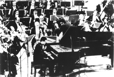 1979年劉詩昆在美國同著名指揮小澤征爾指揮下的美國波士頓交響樂作演奏鋼琴協奏曲。