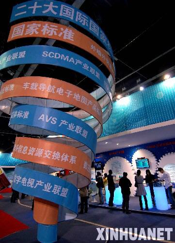 10月9日,參觀者在觀看展覽。當日,“創新之路——中關村科技園區成立20周年成就展”在北京國家會議中心舉行。展覽通過圖片、實物展示等方式,回顧中關村輝煌的發展歷程,展示中關村20年來矚目的成就、前沿的創新成果以及嶄新的園區面貌。 新華社記者 公磊 攝