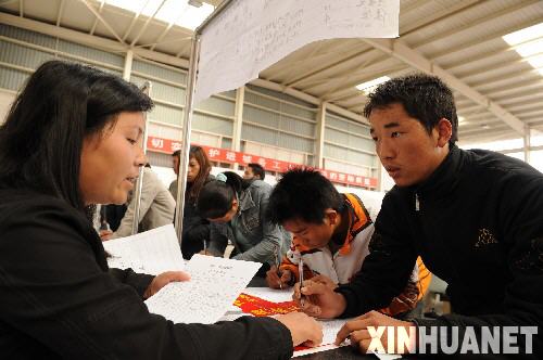 12月16日,云南楚雄青年沙智軍(右)正在咨詢填寫用人報名表。當日,云南省返鄉農民工現場招聘會在昆明市南壩人力資源市場舉辦。 新華社記者 秦晴 攝