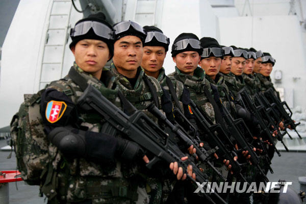 12月25日,海軍特戰(zhàn)隊(duì)員在軍艦上進(jìn)行反海盜訓(xùn)練。 當(dāng)日,即將隨軍艦出征亞丁灣、索馬里海域執(zhí)行護(hù)航任務(wù)的中國(guó)海軍特戰(zhàn)隊(duì)員,在“海口”號(hào)導(dǎo)彈驅(qū)逐艦上進(jìn)行反海盜訓(xùn)練。這些優(yōu)中選優(yōu)的特戰(zhàn)隊(duì)員個(gè)個(gè)都是訓(xùn)練尖子,具有較強(qiáng)的特種作戰(zhàn)能力。他們已在心理、體力和技能上進(jìn)行了充分準(zhǔn)備,進(jìn)行了潛水、艦體攀爬、射擊等方面的強(qiáng)化訓(xùn)練,每個(gè)人都能熟練使用多種武器,并在空手情況下一人可對(duì)付數(shù)人。新華社記者 查春明攝