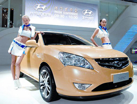 為迎合中國人喜好而將水箱和車燈擴大的北京現代的伊蘭特悅動(韓國名為Avante)。