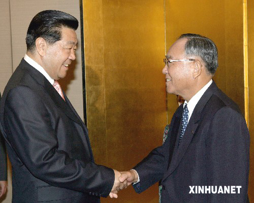 9月14日,全國政協(xié)主席賈慶林在東京出席日本經(jīng)濟團體聯(lián)合會舉辦的歡迎招待會。這是賈慶林與日本經(jīng)團聯(lián)會長御手洗富士夫握手。     新華社記者姚大偉攝